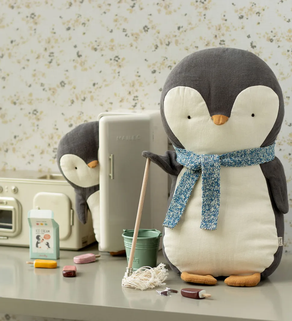 Maileg pingvinen har PP piller i bagdelen, som giver den tyngde og gør at den kan stå oprejst. Det søde design bringer en hyggelig stemning til børneværelset eller et andet rum i hjemmet.