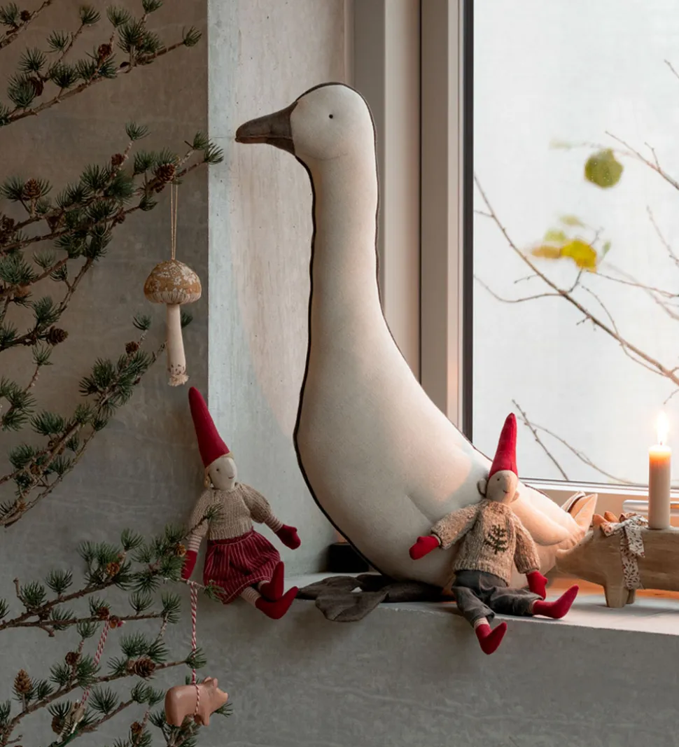 Maileg gåsen har en lang hals og i bagdelen er der små kugler, som giver den tyngde og gør at den kan sidde selv. Gåsen kan være med til at skabe en hyggelig julestemning på børneværelset eller et andet sted i hjemmet.