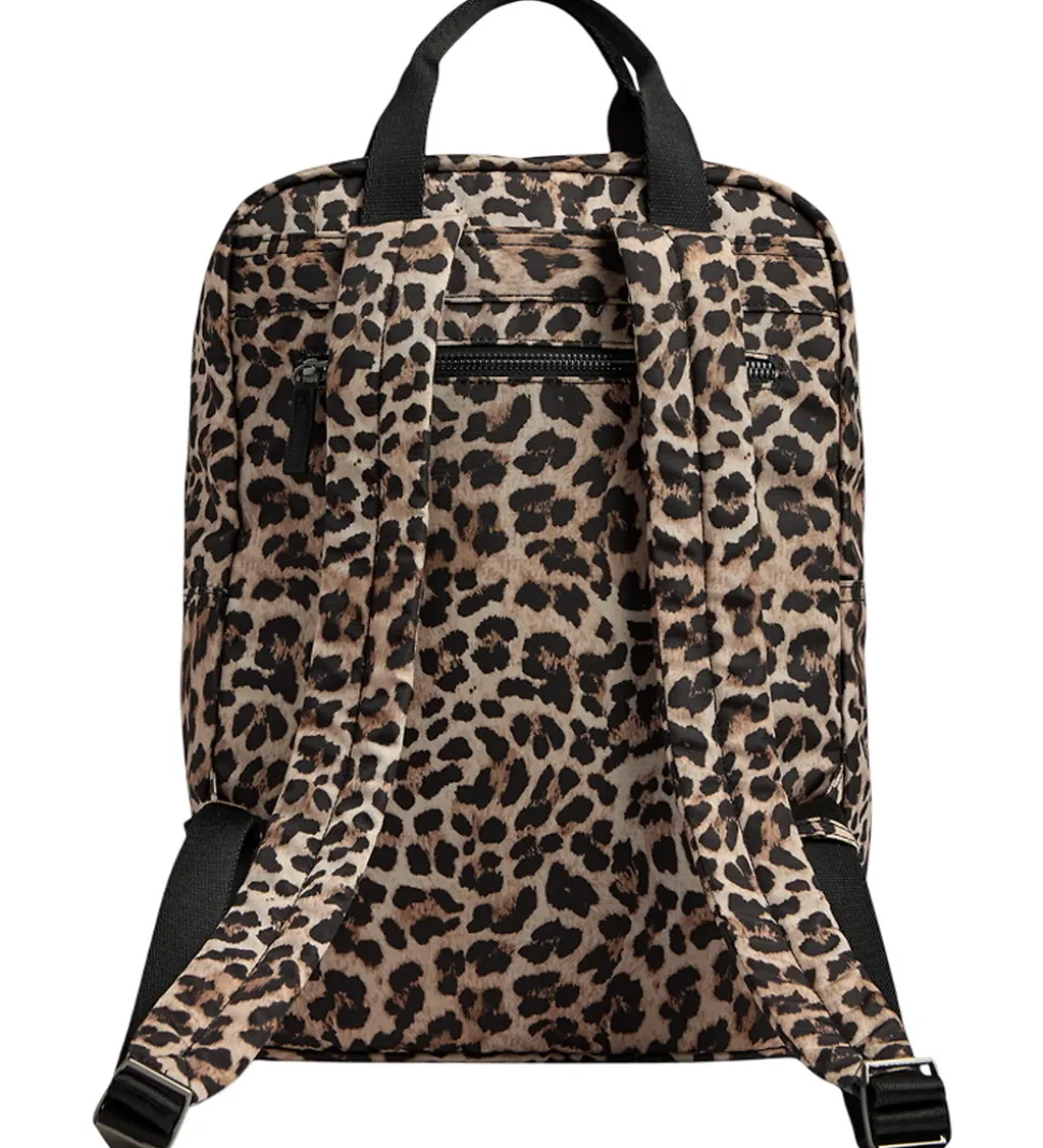 Smart Markberg rygsæk med leopardprint i brun og sort og med et logo fortil.
