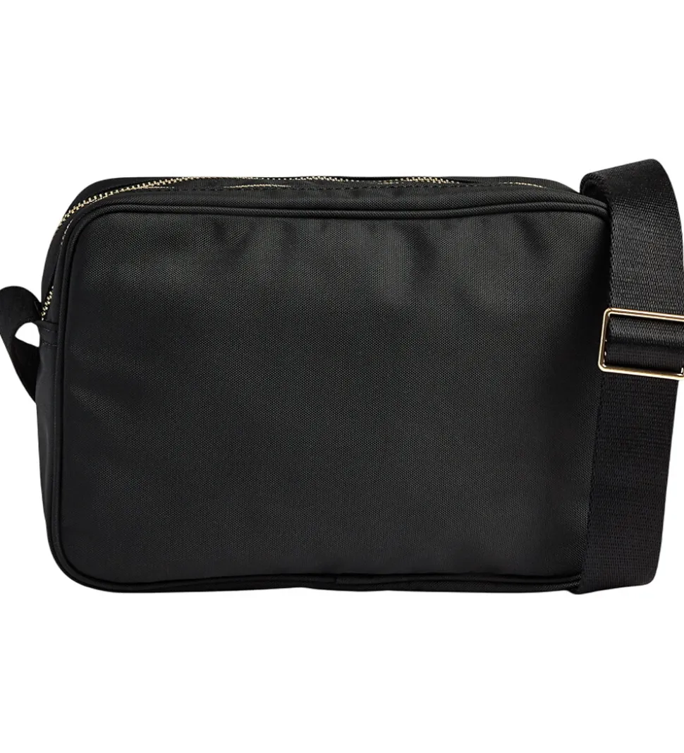 Skuldertasken bæres i en bred, justerbar skulderrem.