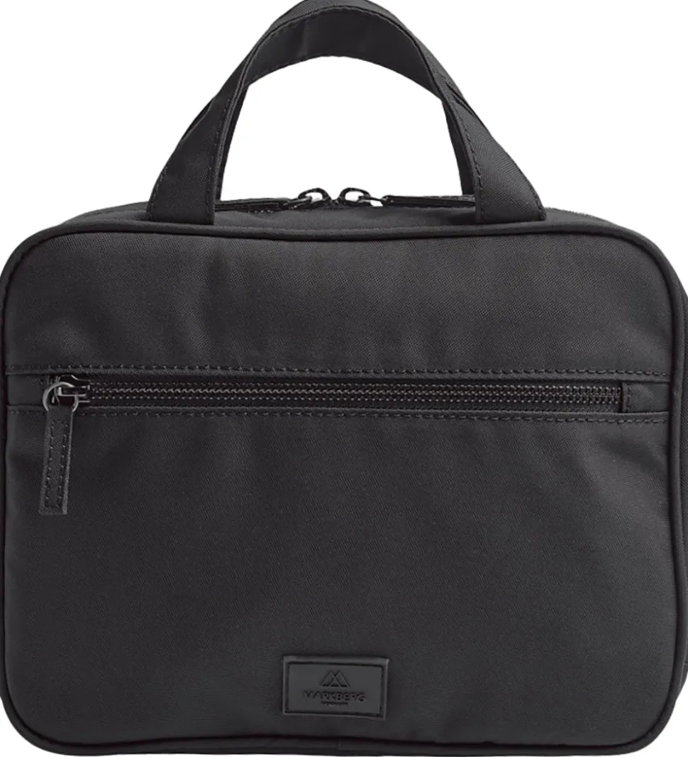 Flot Markberg toilettaske i sort med et lille gummilogo på fronten.