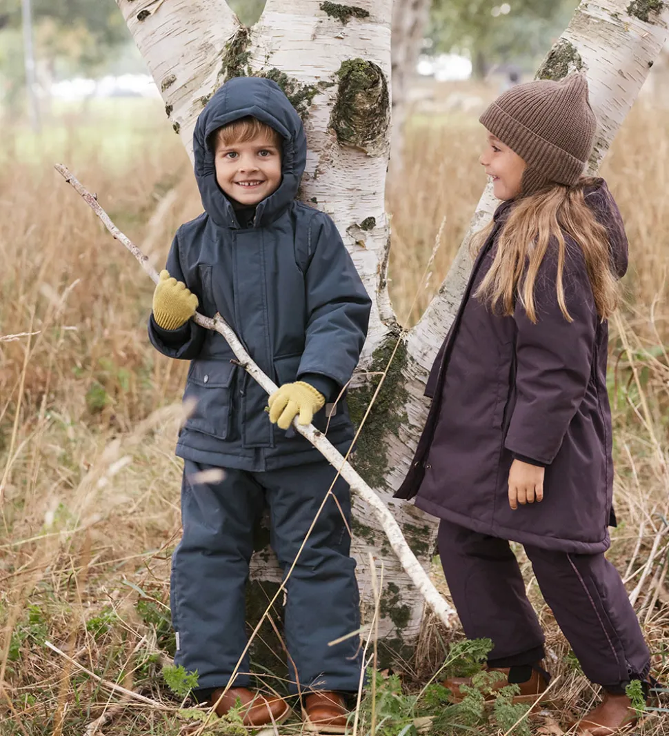 Flotte MarMar skibukser i mørkeblå med lyse seler og refleksdetaljer langs ydersiden af benene.