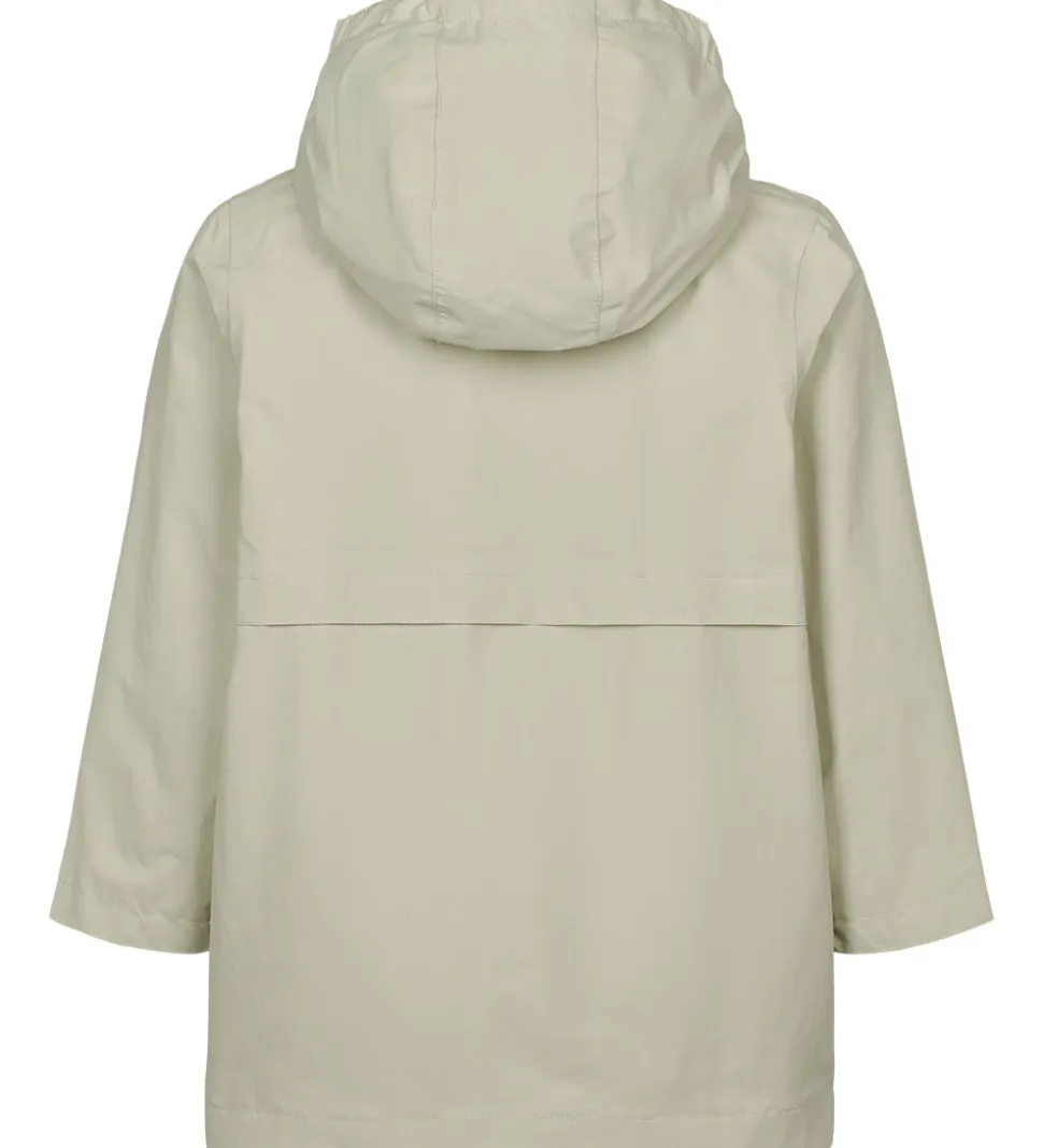 MarMar sommerjakken har to markante klaplommer med trykknapslukninger på fronten og en foldedetalje på tværs af ryggen. Sommerjakken er ikke vatteret og har et glatvævet for.