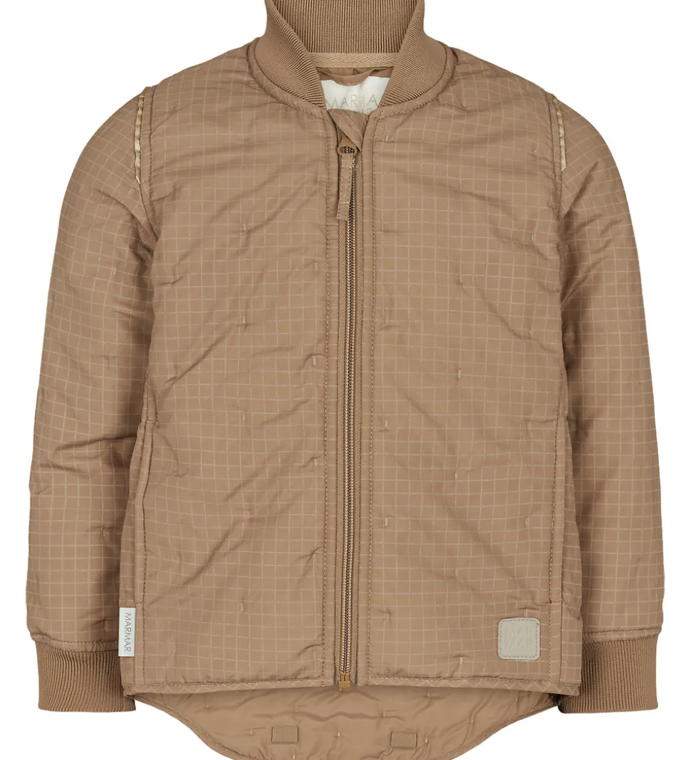 Flot MarMar termojakke i brun med et ternet mønster med refleksprint.