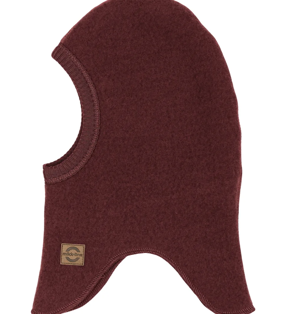 Skøn Mikk-Line elefanthue i mørkerødt, filtet merinould.