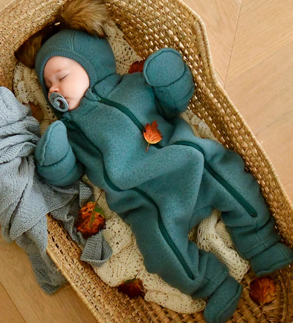 Dejlige Mikk-Line futter af filtet merinould i mørk, støvet grøn.