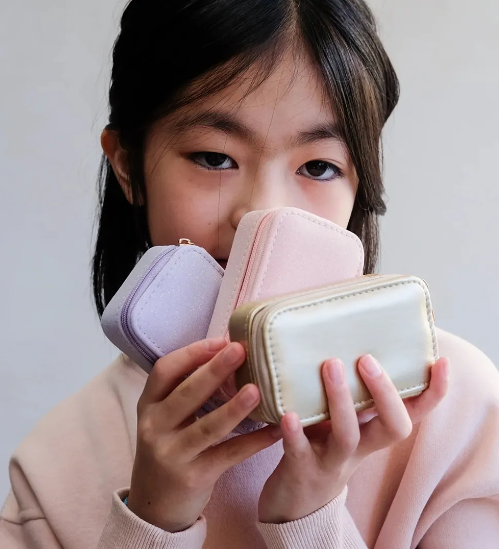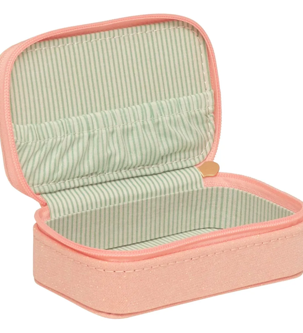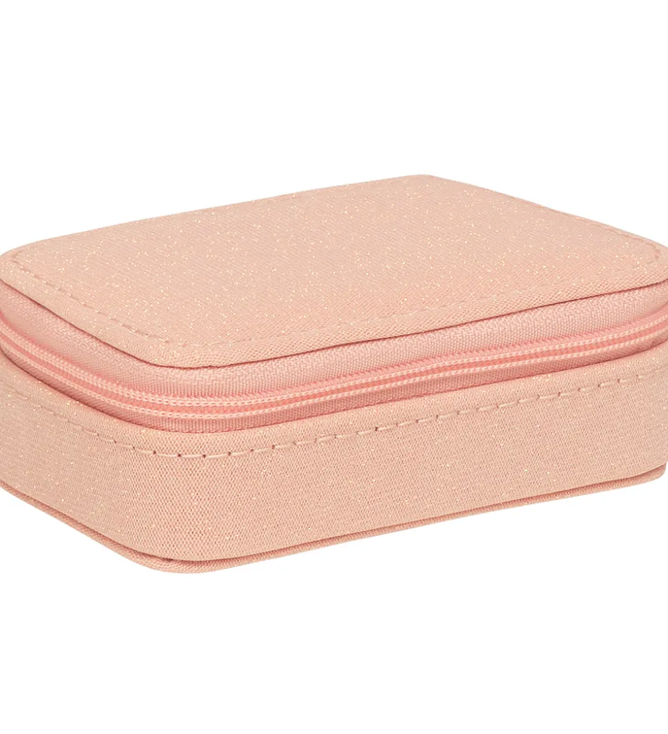 Elegant Mimi & Lula smykkeskrin i en blød lyserød nuance med glimmer.