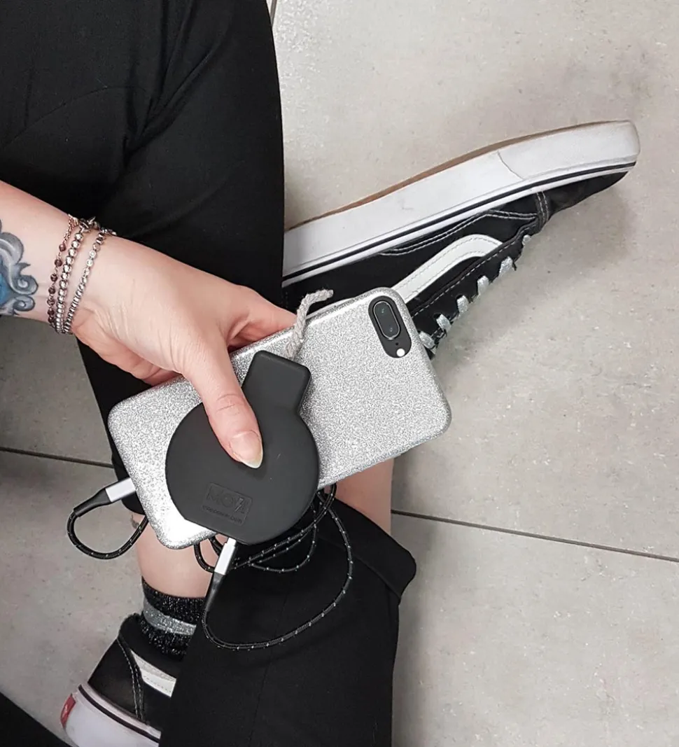 Moji Power powerbanken er et transportabelt batteri, som kan bruges til at oplade en mobiltelefon, når du er på farten og ikke har adgang til et strømstrik. Sæt det medfølgende kabel i powerbanken, og forbind den til en oplader med USB-port eller en computer. Så har power banken nok strøm til at oplade en telefon én gang.