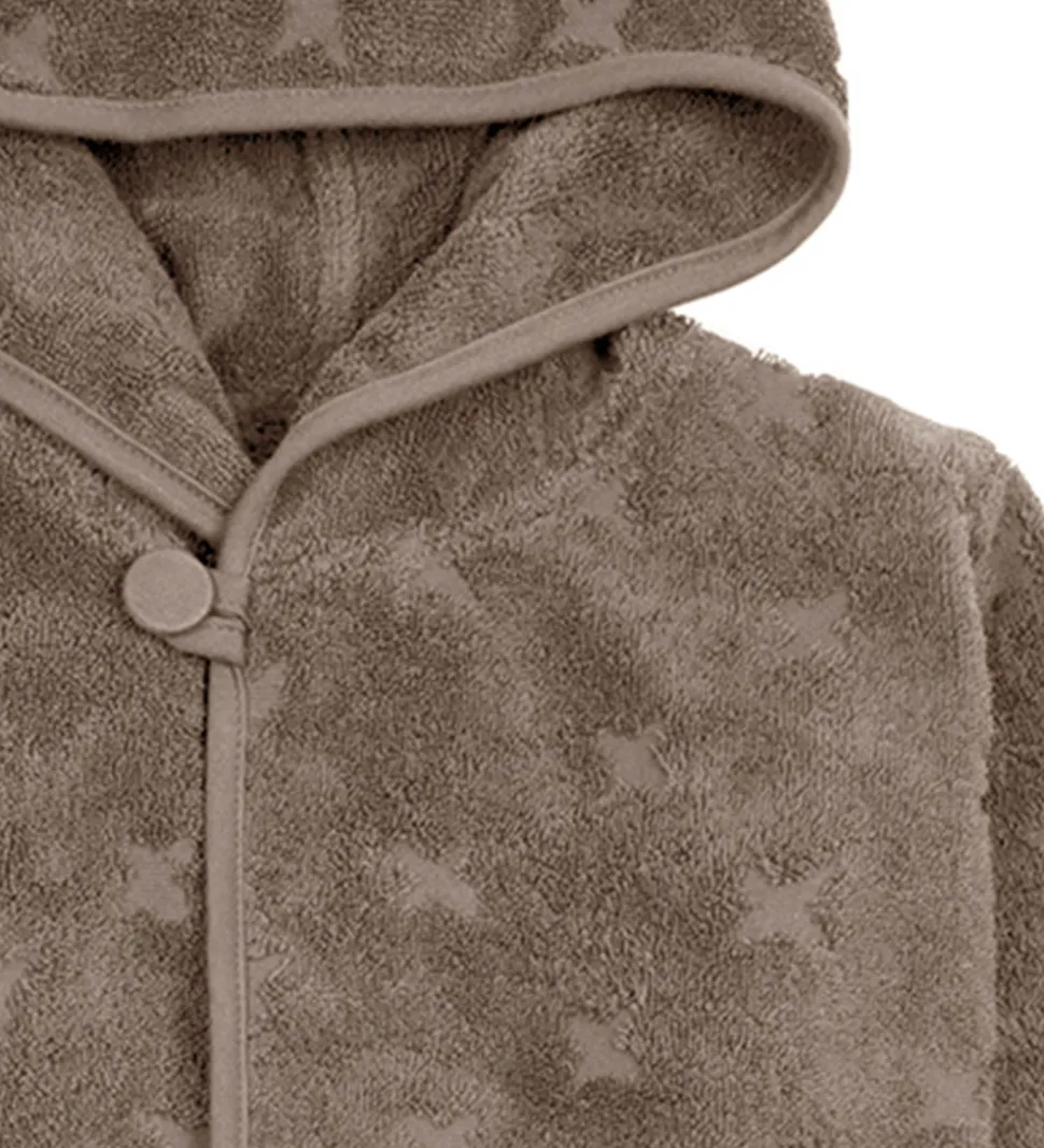 Flot Müsli badekåbe i støvet brun med et mønster af små, indprægede stjerner.