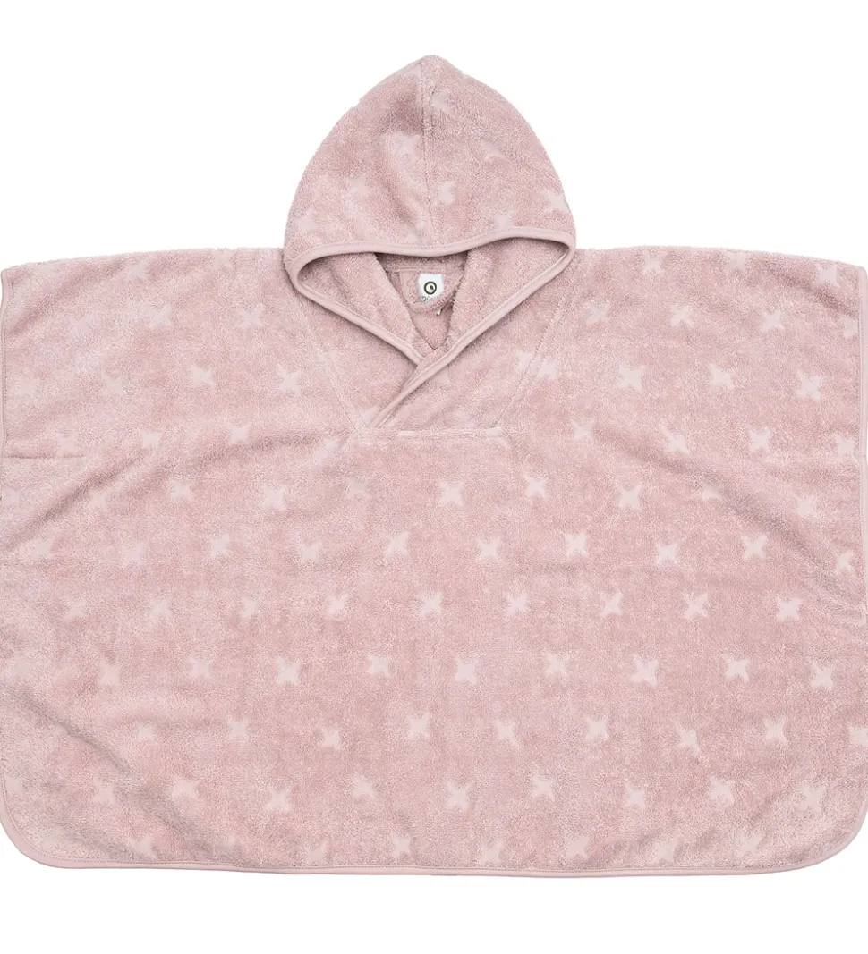 Skøn Müsli badeponcho i en lys rosa nuance med et mønster af indprægede stjerner.
