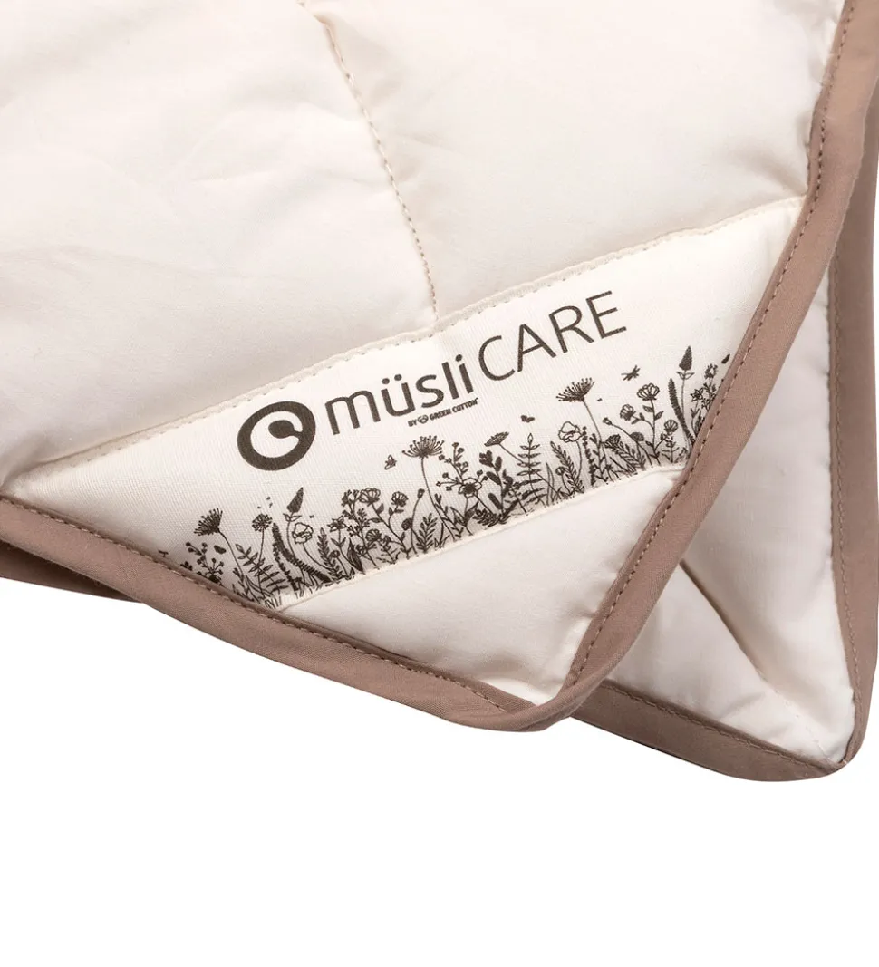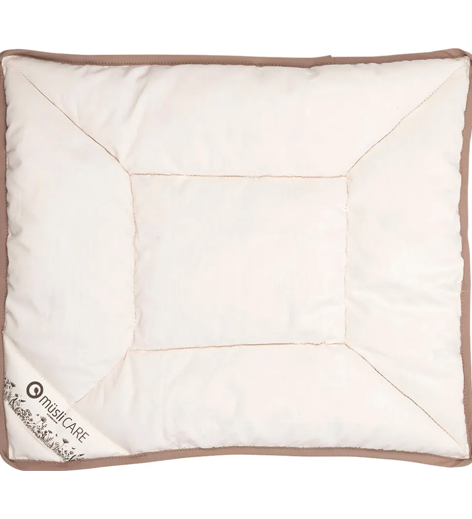 Müsli puden består af 100% naturligt kapok med ydrestof af 100% økologisk bomuld. Puden er et sundt produkt for dit barn at sove med da kapok er af 100% økologisk fibre. Samtidig er kapokken temperaturregulerende så barnet hverken vil fryse eller have det for varmt. Puden er ekstrem allergivenlig fordi bakterierne ikke kan leve i fibrene.