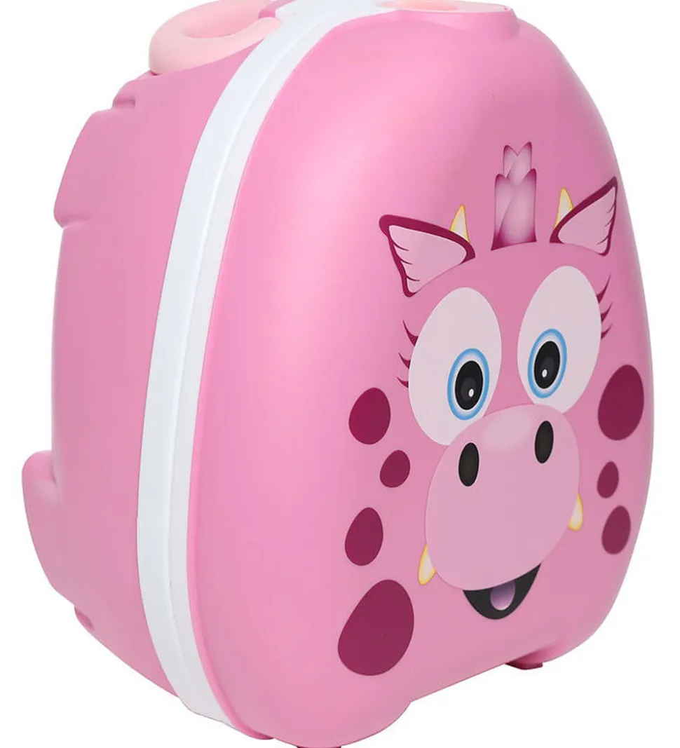 Praktisk My Carry Potty bærbar potte i et sjovt drage-print med sødt ansigt samt pink og hvide farver.