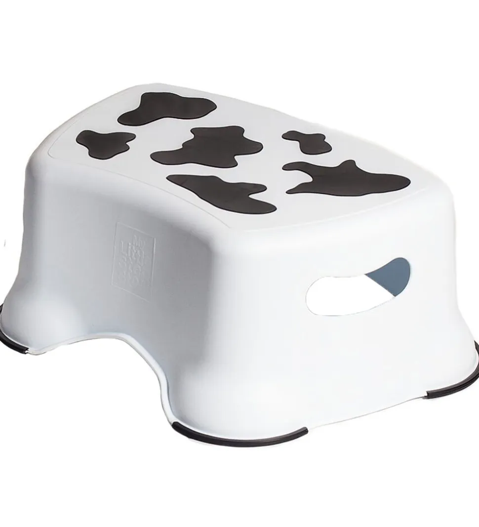 Praktisk My Carry Potty skammel i et sjovt ko-print med hvide og sorte farver.