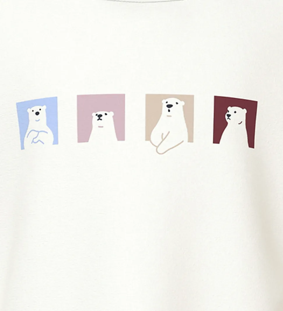 Den ene bluse er beige med en pingvin iført hue og tørklæde samt teksten “Dancing on the Ice”. Den anden bluse er hvid med et motiv af fem isbjørne i forskellige farvede rammer. Bluserne har en rund halsudskæring.