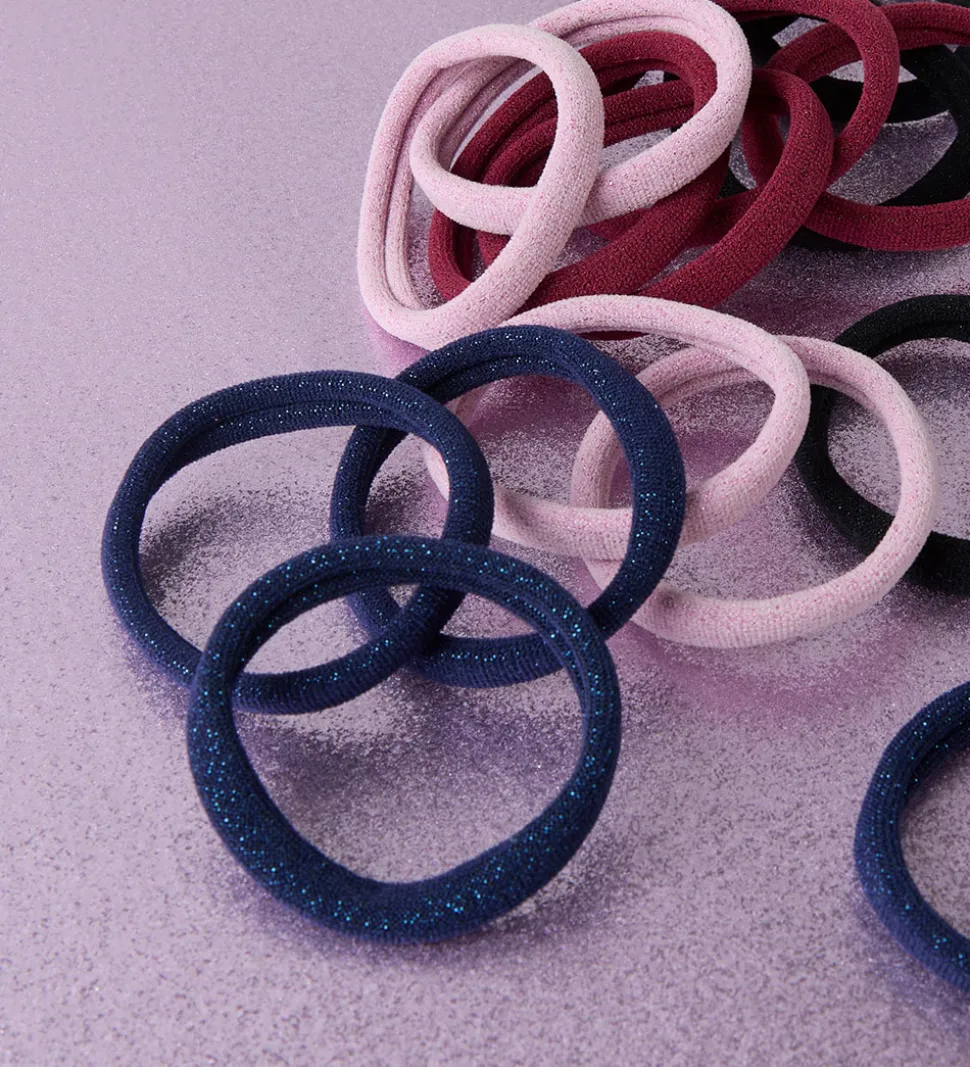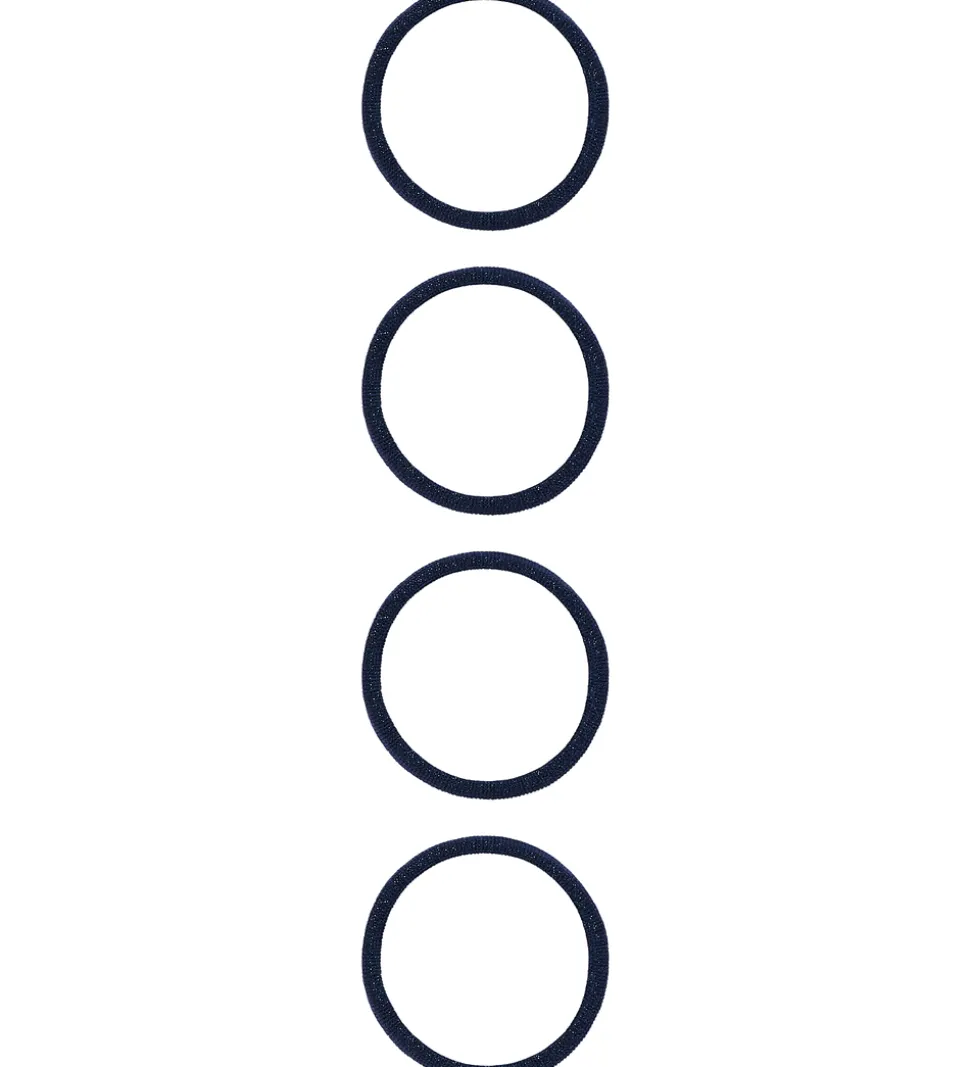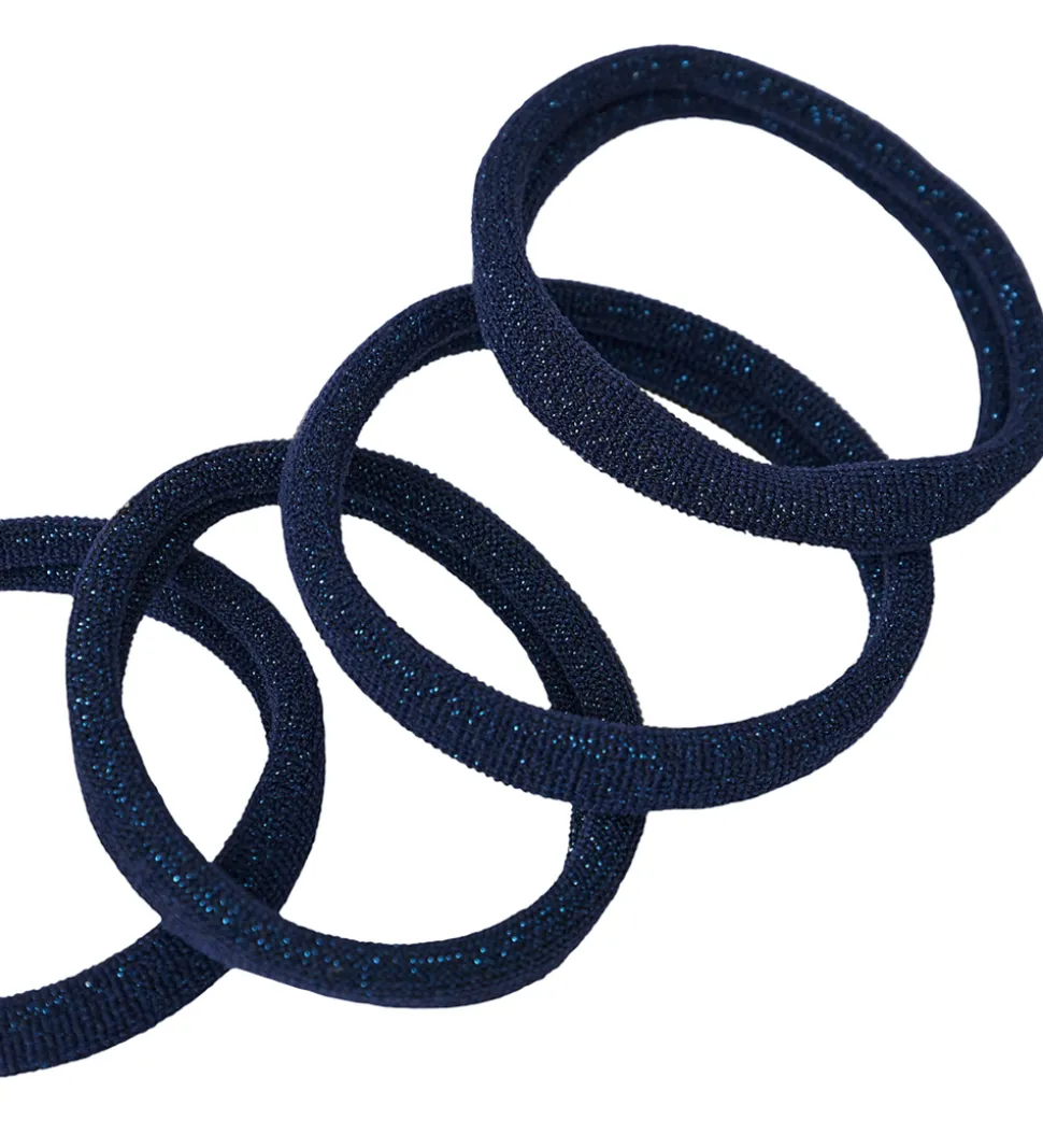 Smarte Name It hårelastikker i navyblå med glimmer. Hårelastikkerne sælges i en 4-pak, og er lavet i et design som er skånsomt for håret.