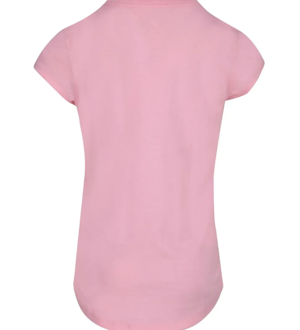 Fin Nike t-shirt i rosa med et stort logoprint på brystet sort med glimmer.