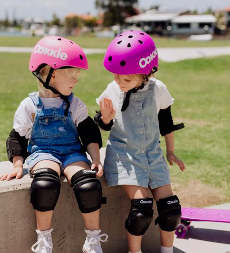 Ookkie hjelmen spændes under hagen med justerbare remme og et praktisk plastikspænde. Hjelmen kan ligeledes spændes ind i nakken, så den sidder præcis som den skal.