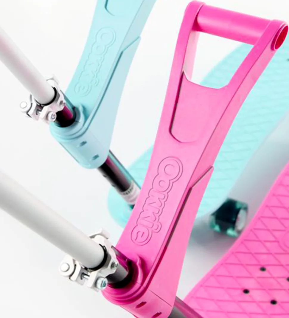 Sjovt Ookkie skateboard i rosa med en sølv stang.