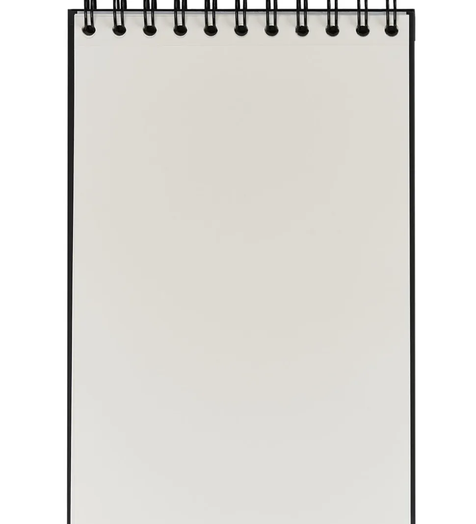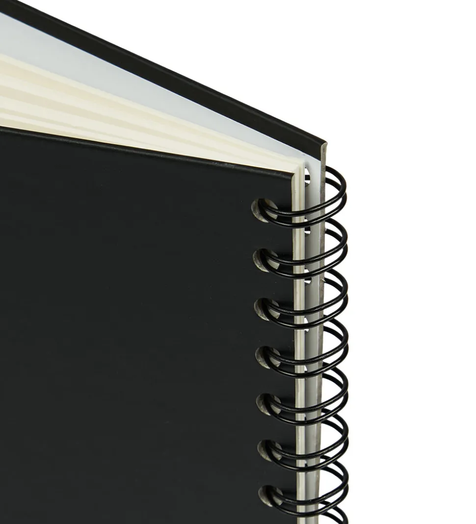 Fin Oxford skitsebog med 50 hvide, rene stykker A5-papir. Skitsebogen har et sort, hårdt omslag.