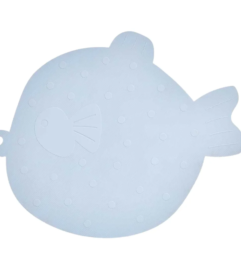 Praktisk OYOY bademåtte formet som en fisk i blå.
