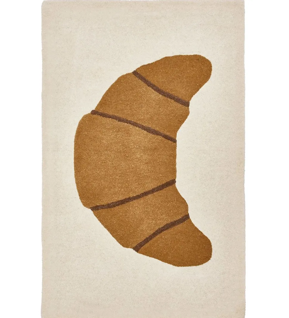 Lækkert OYOY gulvtæppe i hvid med en stor, brun croissant.