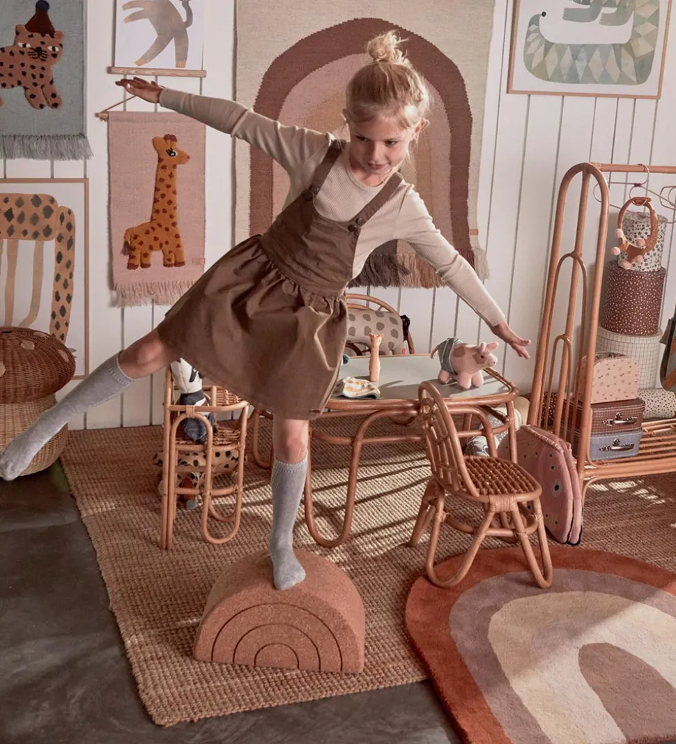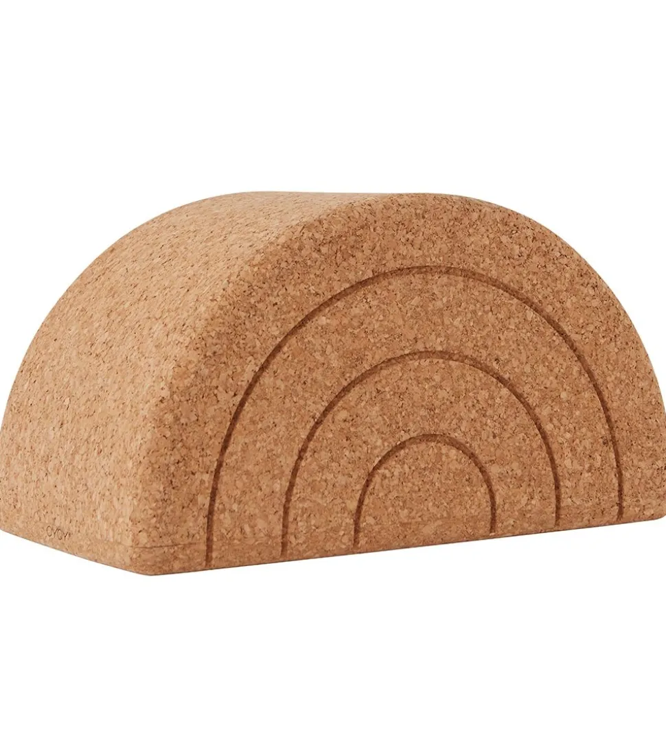 Smart OYOY skammel i naturlig kork, med smalle striber fortil som får det til at ligne en regnbue.