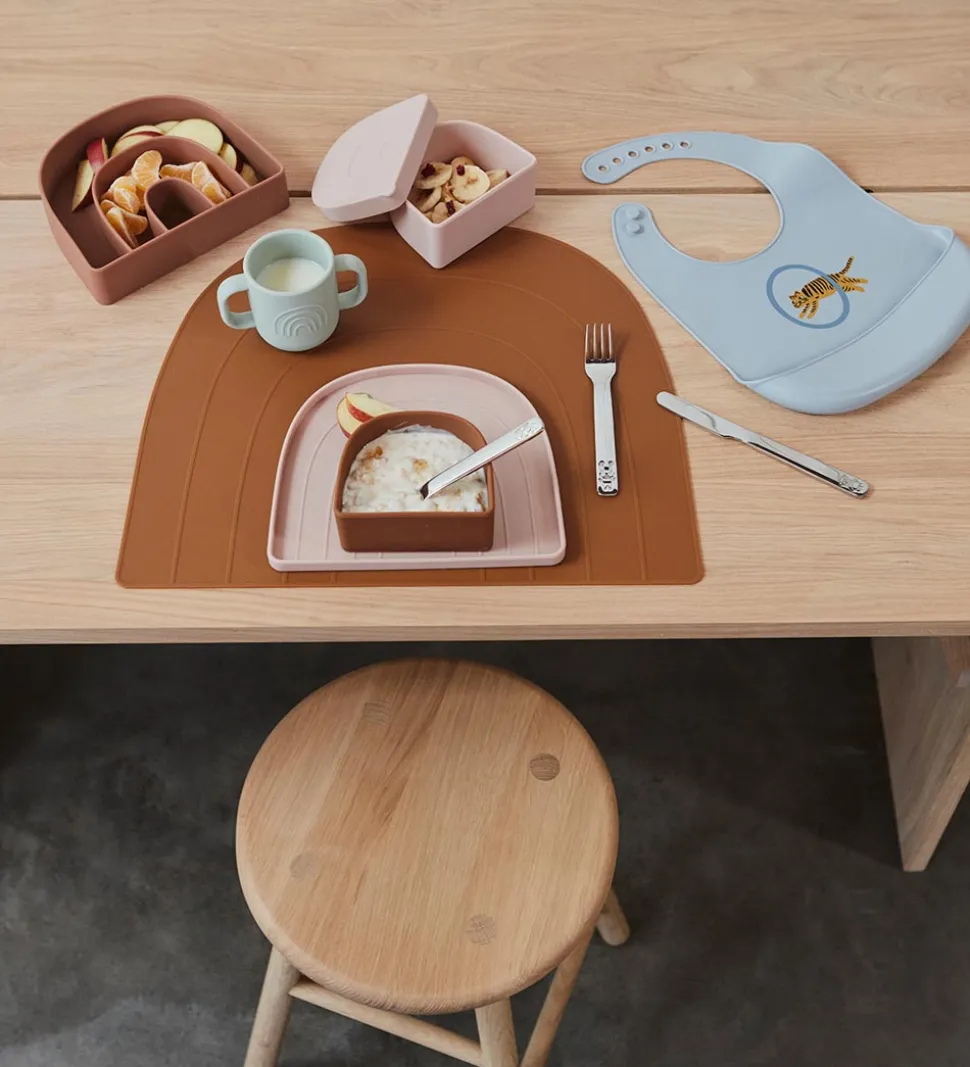 Praktisk OYOY snackskål i beige, med form som en regnbue.