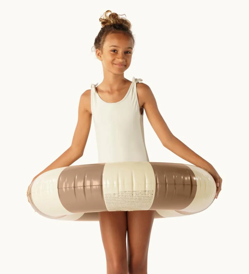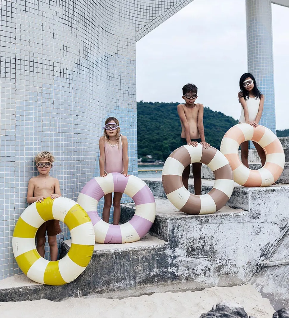Petites Pommes baderingen gør tiden i vandet endnu sjovere, og den er en perfekt følgesvend i poolen eller ved stranden. Baderingen er oppustelig med en praktisk ventil, som kan trykkes ind, og der medfølger et praktisk lappesæt i tilfælde af punktering.