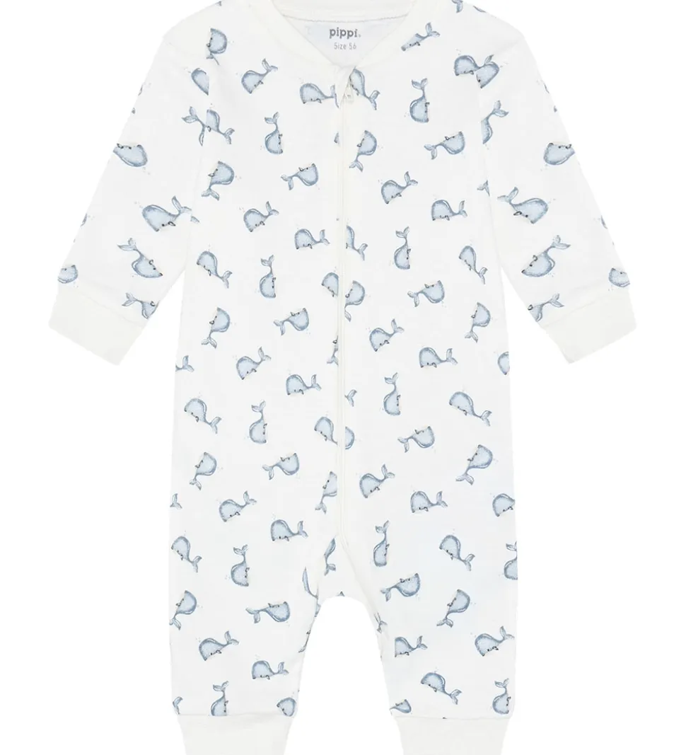 Pippi Baby heldragterne har lange ærmer og ben med brede ribkanter. De åbnes på fronten ved hjælp af en gennemgående lynlås fra halsåbningen til venstre ben. I halsåbningen er der en smal ribkant, og heldragterne er i en lækker bomuldskvalitet.