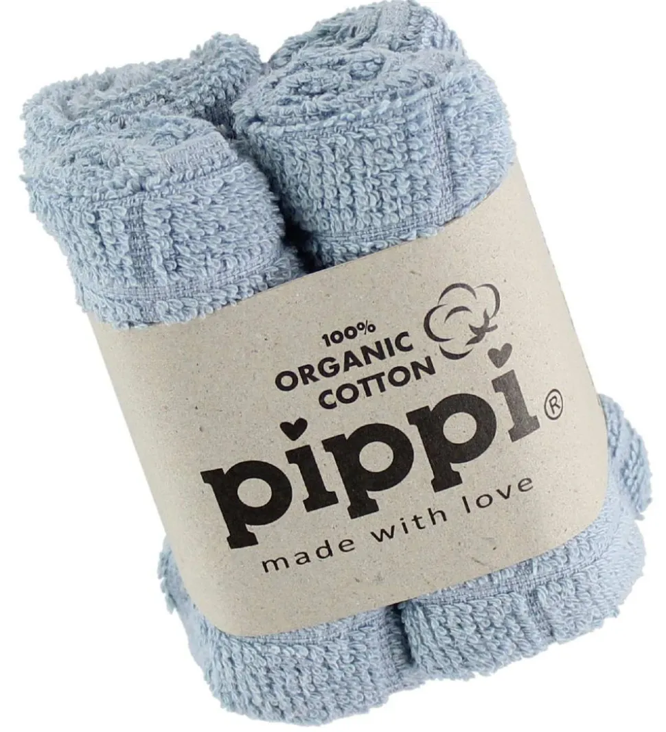 Lækre Pippi vaskeklude i ensfarvet lyseblå solgt i en 4-pak.