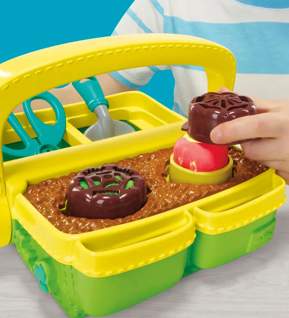 Play-Doh sættet indholder en plantekasse med håndtag, tilbehør og fem bøtter med modellervoks i forskellige farver. Der medfølger flere forme, som kan skabe forskellige blomster, og en skovl, saks og plastikkniv, som kan gøre blomsterne fine.