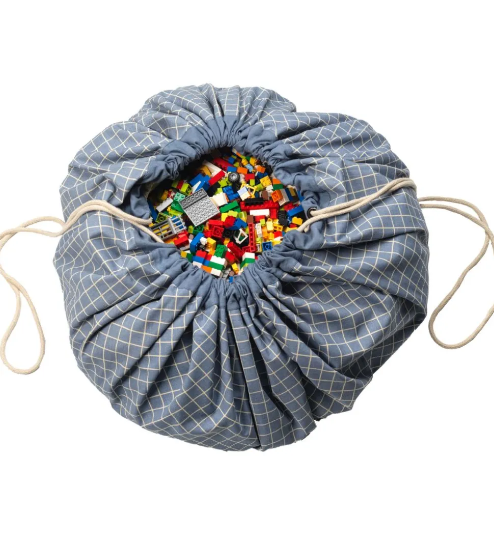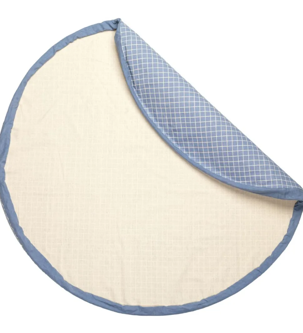 Smart Play&Go legetøjstæppe i blå med hvide tern på den ene side og i hvid på den anden side.