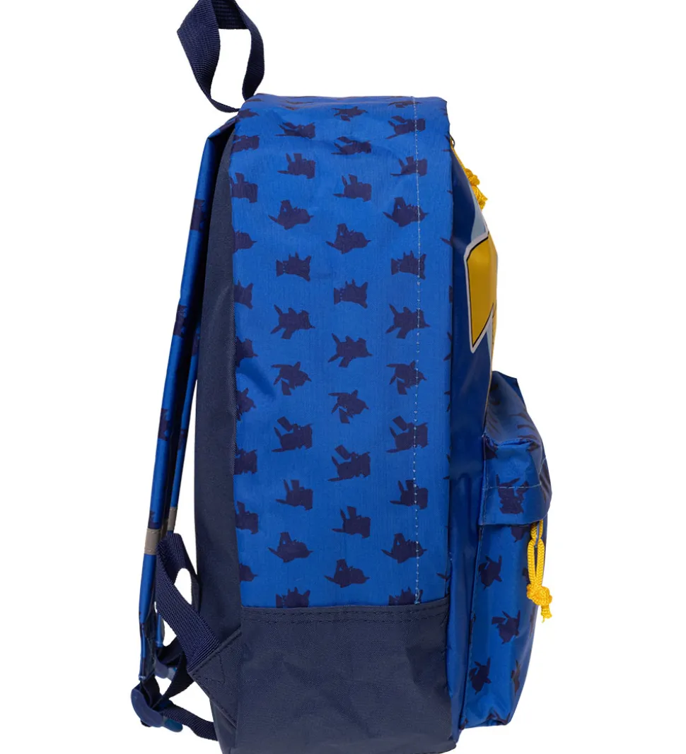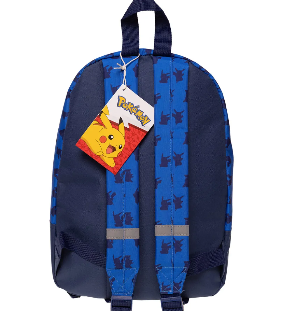 Smart Pokémon børnehavetaske i navy, og fortil er den blå med et stort, gult print med Pikachu. PÅ siderne, skulderremene og frontlommen er der et navy print med Pikachu.