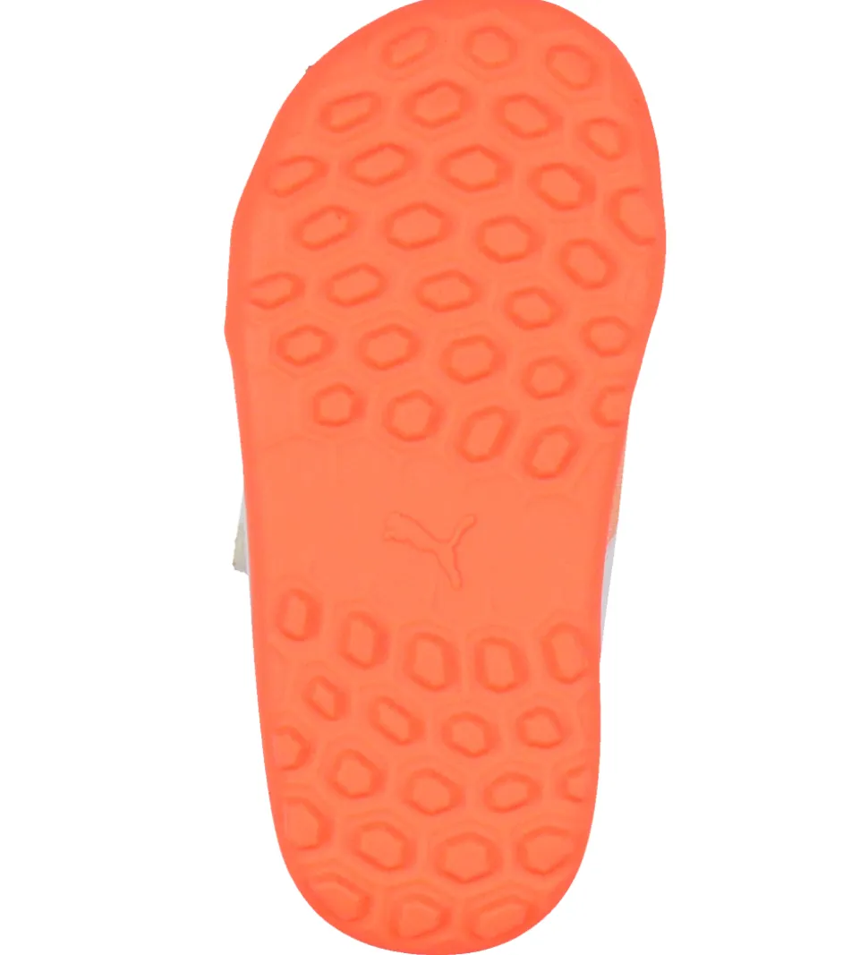 Puma fodboldstøvlerne lukkes med en bred velcrorem over vristen, der gør det nemt og hurtigt at få skoene af og på. Fodboldstøvlerne har fast hælkappe. Indvendigt er der hvid tekstil med polstring omkring åbningen og behagelige indersåler.