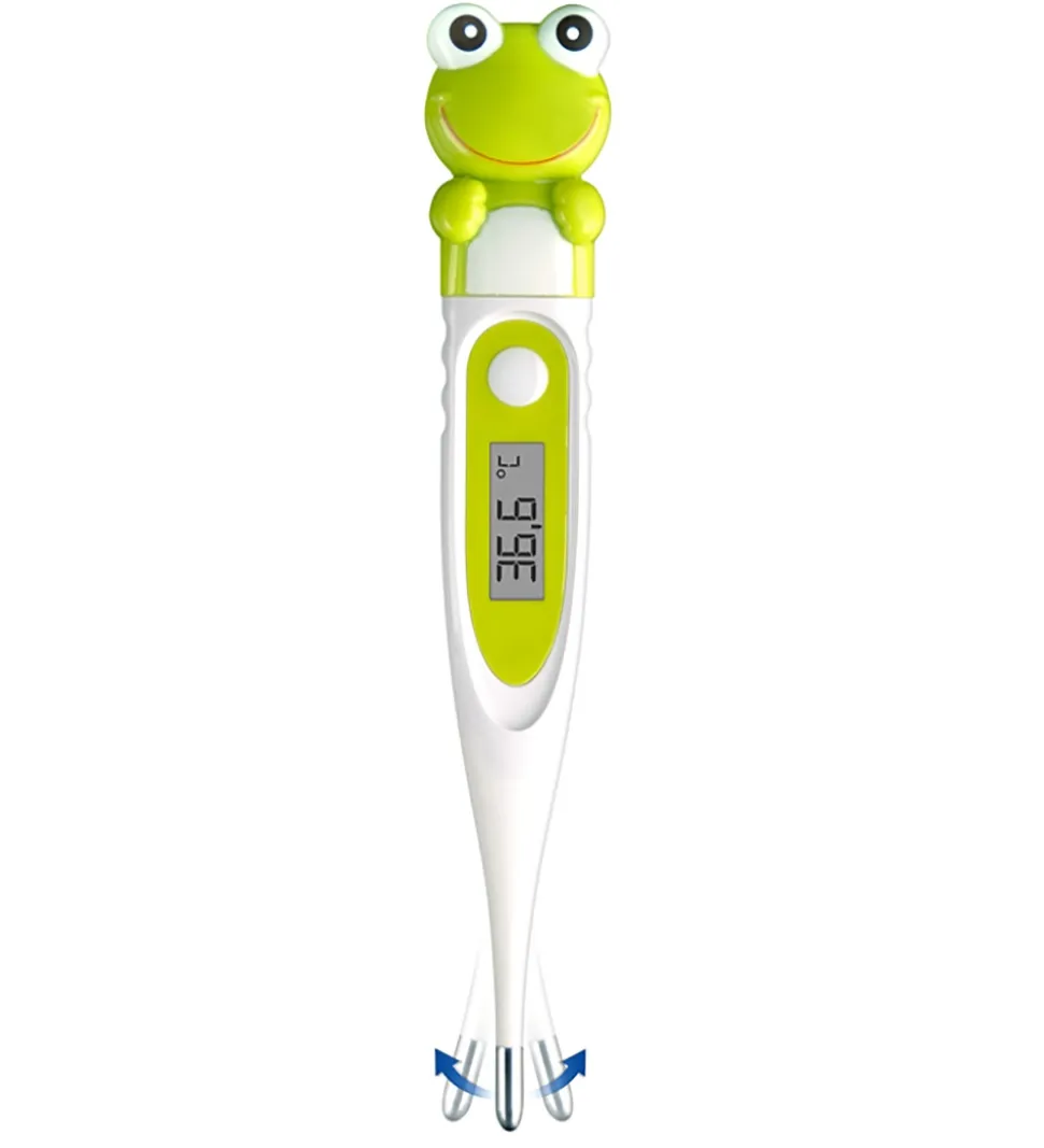Reer termometeret er digitalt, som er velegnet til brug på børn. Målespidsen er fleksibel, hvilket mindsker risikoen for personskade i forbindelse med brugen. Den har en indbygget feber-alarm som vil blive aktiveret ved temperaturer på over 37,5 °C, og det store og let aflæselige display viser den nøjagtige temperatur på 30 sekunder. Termometret afgiver et bib, når målingen er afsluttet.