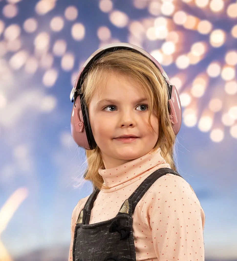 Smarte Reer høreværn til børn i rosa, med striber i forskellige rosa nuancer på båndet.
