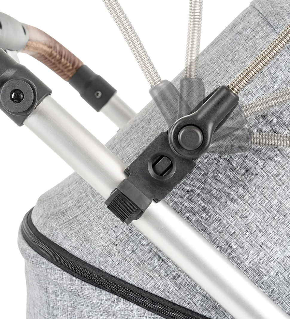 Praktisk Reer parasol til barnevogn i gråmeleret.
