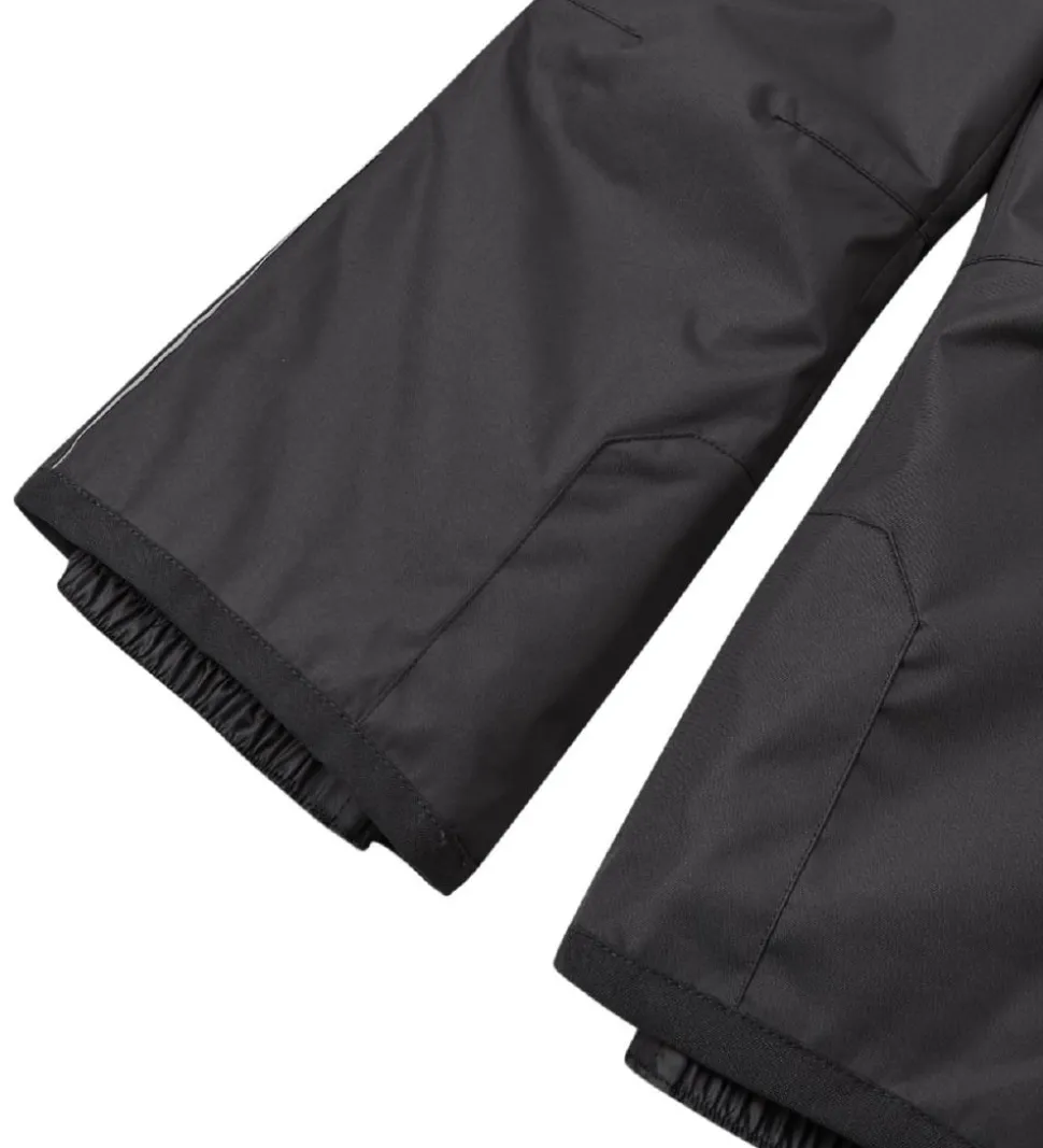 Reima skibukserne har forstærkninger på buksebenene, og der er praktiske snefang med en smal elastikkant med gummibelægning på indersiden. Det yderste lag af buksebenet kan fæstnes til snefanget med en trykknap, så det ikke glider op. Nederst langs siderne af buksebenene er der smalle refleksstriber.