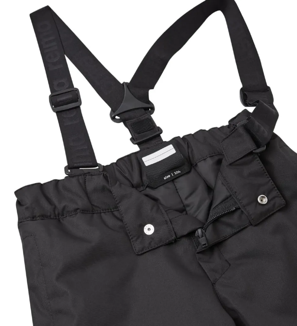 Reima skibukserne har justerbare, aftagelige seler, som fæstnes med velcro, og de samles på ryggen, så de sidder godt fast på skuldrene. I livet er der en bred elastik, og skibukserne åbnes fortil med en tryknap og en lynlås. I siderne er der praktiske lommer, som lukkes med en skjult lynlås.