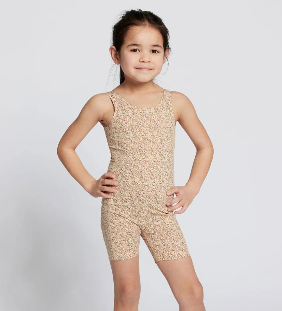 Flot Rethinkit gymnastikdragt i creme med et mønster i armygrøn, brun samt rosa og lilla. Gymnastikdragten er lavet i en sporty kvalitet.