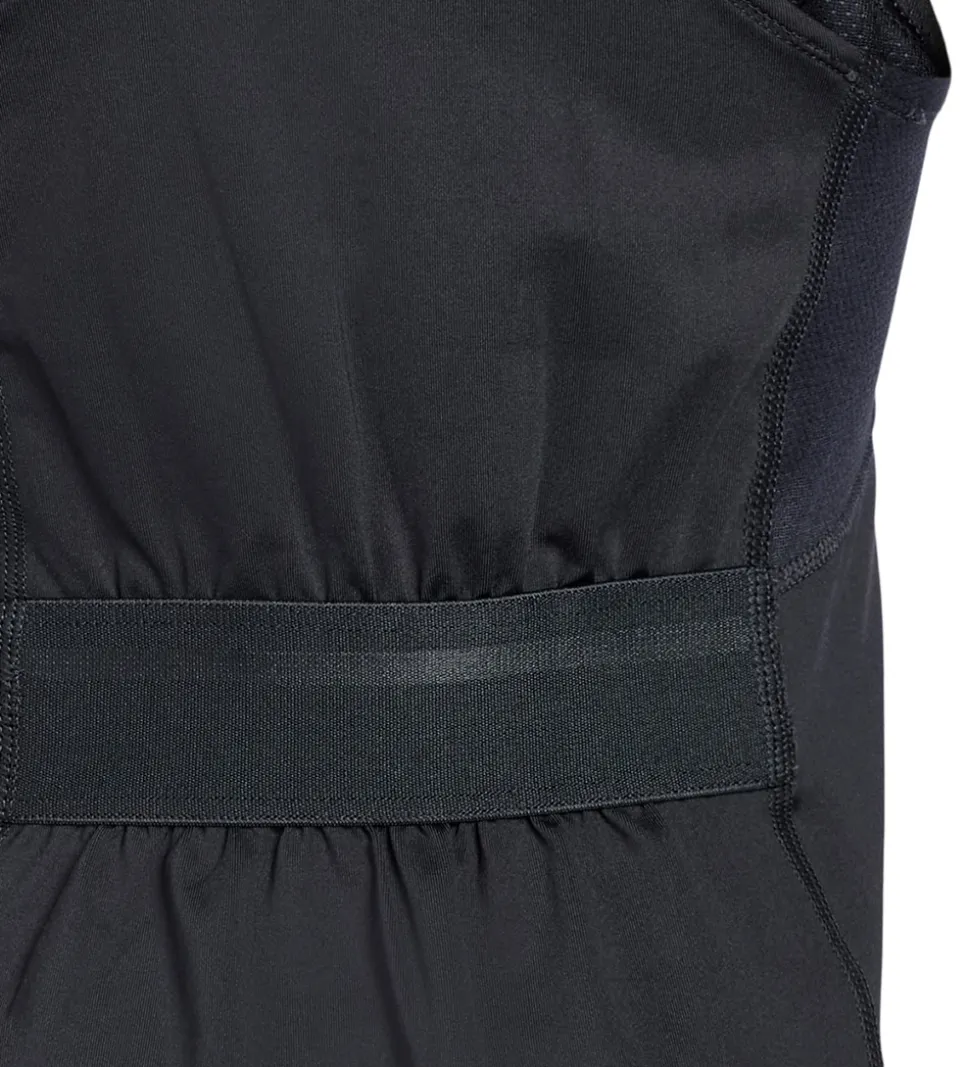 Rethinkit tanktoppen har brede skuldertropper, der mødes på ryggen. Ved lænden har den en bred elastik, som giver et fint snit.