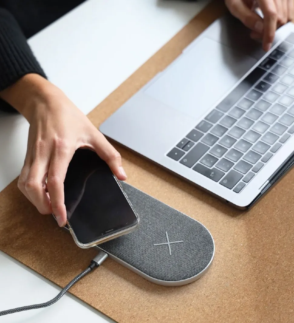 CHARGEit Dual Dock opladeren kan lade ikke bare én men hele to enheder op på samme tid. Den sørger for hurtig, trådløs opladning ved hjælp af premium Qi-teknologi og to opladerspots, hvilket tilsammen sikrer en meget stærk forbindelse til de opladende enheder.