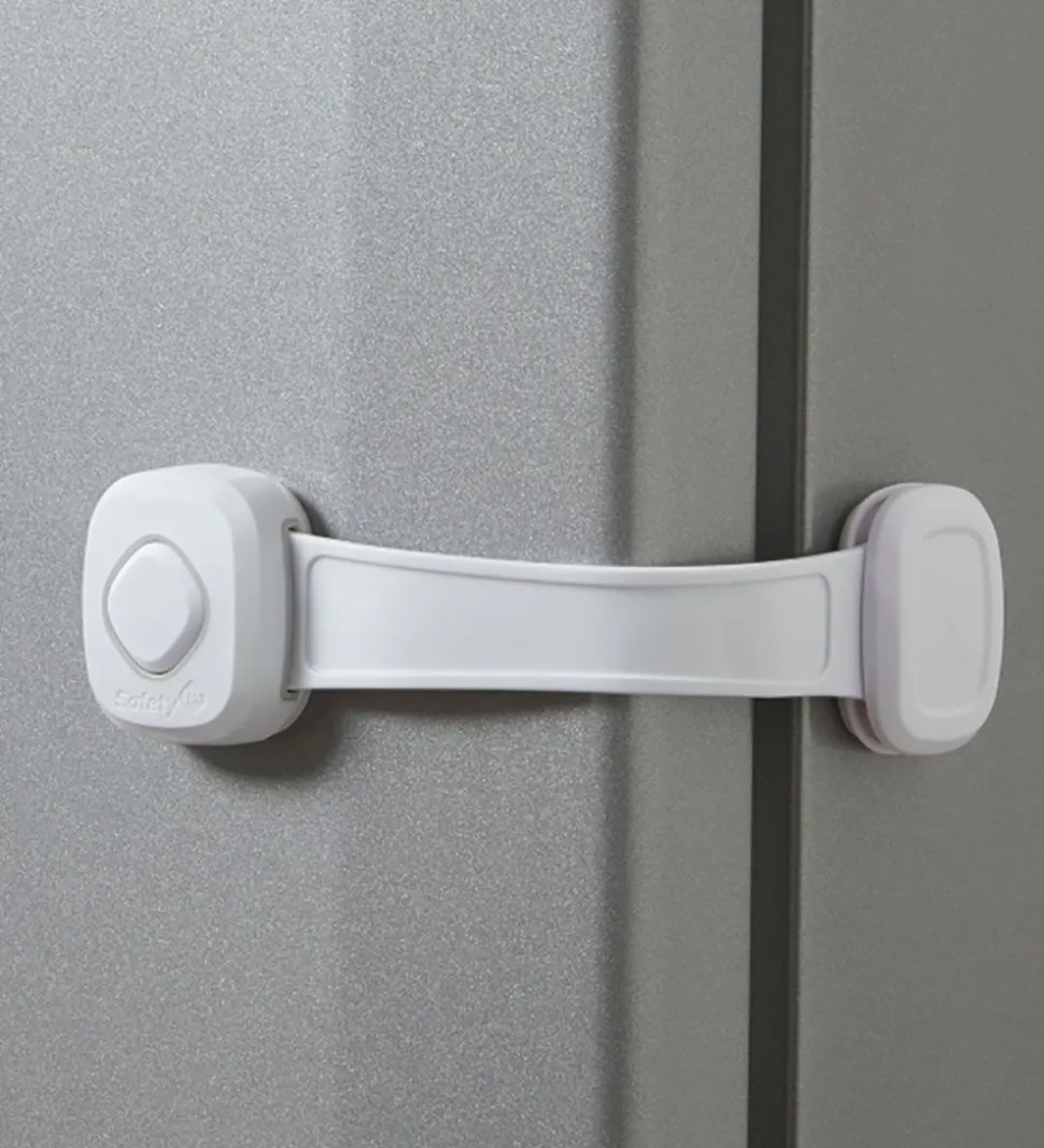 Safety 1st multi-sikkerhedslåsen sættes let fast. Multi-sikkerhedslåsen kan bruges til lige der hvor den er nødvendig, om det er køleskabet, mikroovnen, tørretumbleren eller lignende.