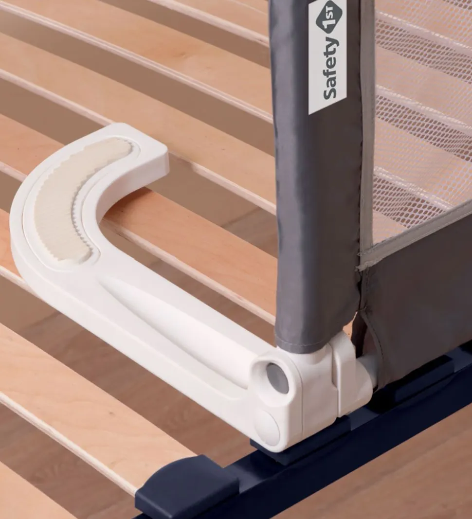Safty 1st sengehesten er perfekt når barnet vokser ud fra tremmesengen og over i en juniorseng, da den sikrer at de ikke risikerer at falde ud over kanten. Den er let at montere og kan foldes ned, så dit barn nemmere kan komme op i og ud af sengen. Sengehesten passer til senge med tremmebund og fast bund, og er velegnet til senge som måler 140 cm i bredden, og under 156 cm i længden.