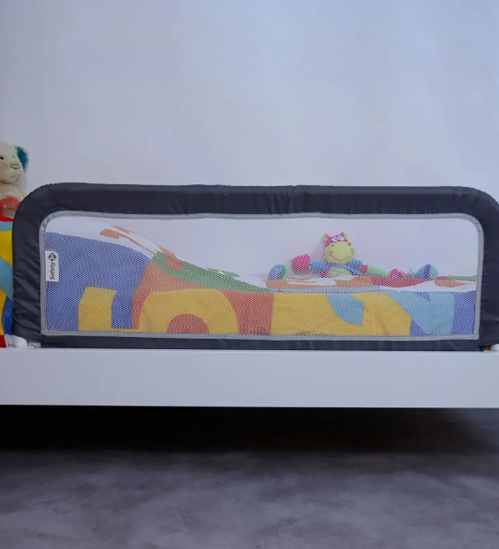Smart Safty 1st sengehest med grå kanter og hvidt net.