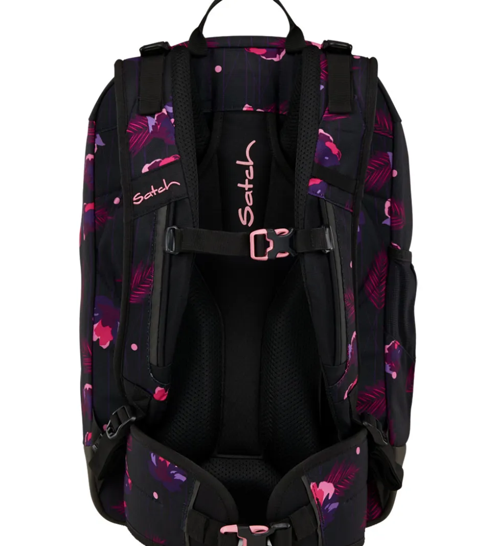 Satch skoletasken har en helt fast bund og ryg, der giver en ergonomisk støtte. Ryggen kan desuden justeres efter barnets højde, så tasken passer helt perfekt, samtidig med at skoletasken vokser med barnet og kan bruges i mange år. Der er vatterede skulderstropper, som kan justeres i længden, og de kan også justeres i forhold til, hvor højt oppe på taskens ryg de skal sidde. Derudover er der et justerbart brystspænde samt et hoftebælte, som kan tages af, hvis man ønsker det.