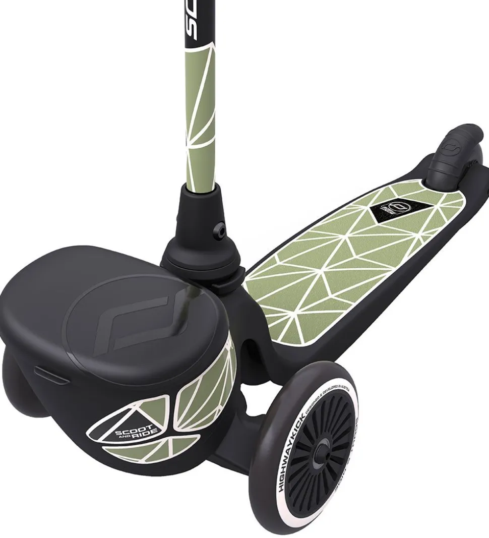 Flot Scoot and Ride Highway Kick 2 i sort, med et smart design i grøn og hvid.