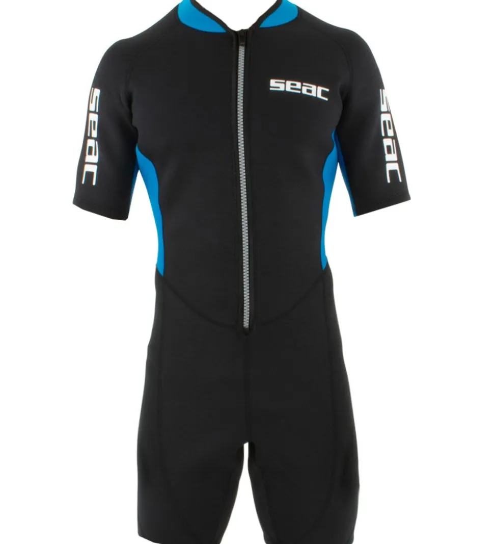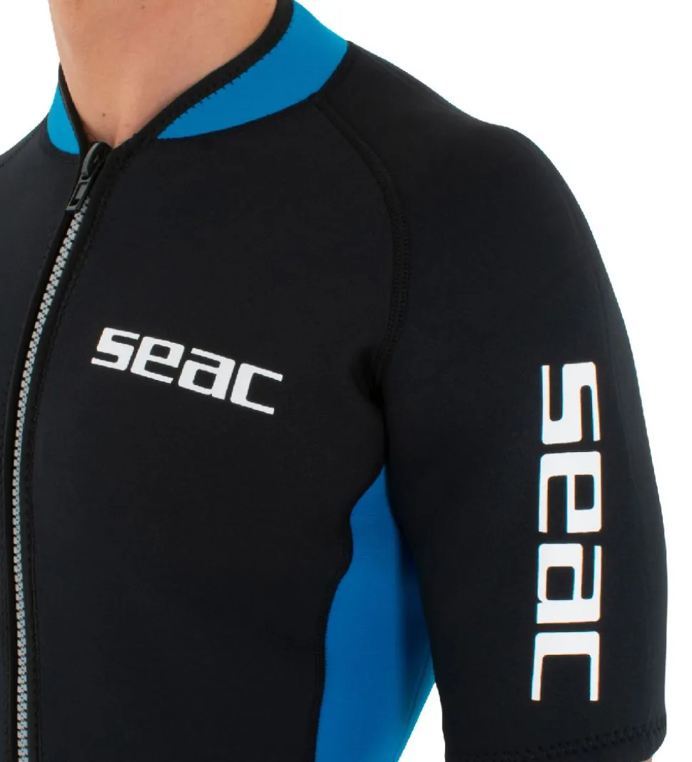 Seac våddragten har korte arme og ben samt en mellemhøj halskrave og åbnes fortil ved hjælp af en lynlås. Våddagten har flade sømme, så der er intet, som generer, når den er på i vandet.