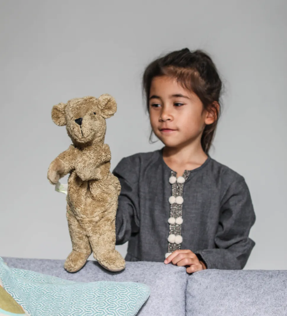 Nuttet Senger Naturwelt hånddukke udformet som et plysset bjørn.