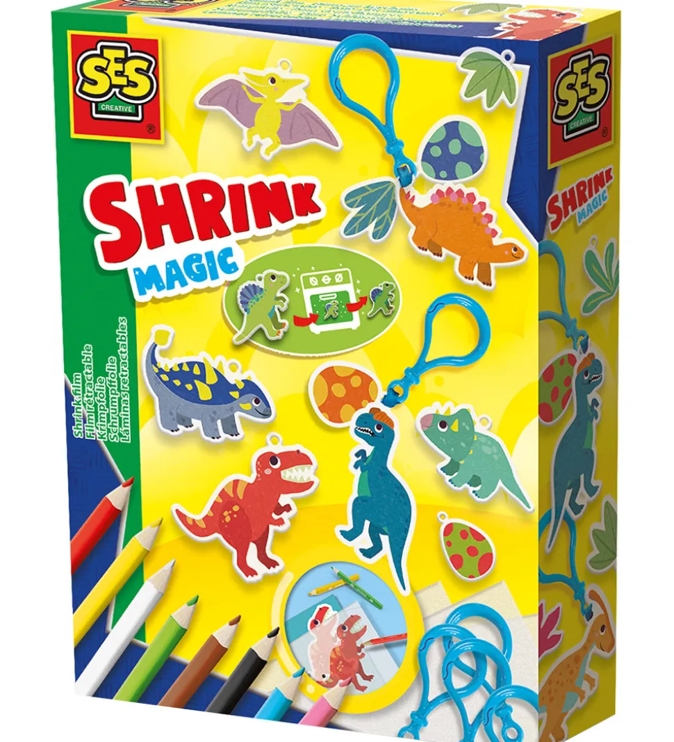 Kreasættet gør det muligt at tegne og farvelægge motiver på krympeplastet, som krymper når det kommer i ovnen. De tegnede figurer bliver mindre, tykkere og mere robuste, og sættes herefter på nøgleringene. Man kan tegne efter dinosaurerne i vejledningen eller skabe sine helt egne designs.